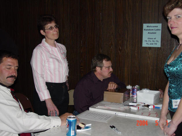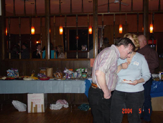 The cost was minimal: $5 per person. Batavia Hall became the place for the "Class Reunion Party". From 6 PM - 12 PM on May 1, 2004 with the entertainment of Mark Smith D.J. service the party began. There were lots of folks, food and fun! Click on the pictures below to make them larger. There were about 150-160 folks in attendance. These are some pictures taken in the beginning of the evening. Take a look at that first picture. Do you remember him? Who do you recognize?